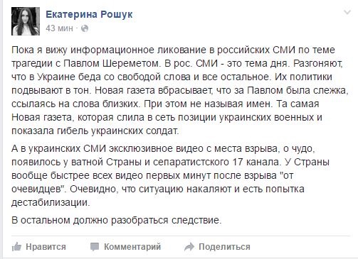 Традиційно будь-яке гучне вбивство в Україні пов'язують і з дією спецслужб Російської Федерації.