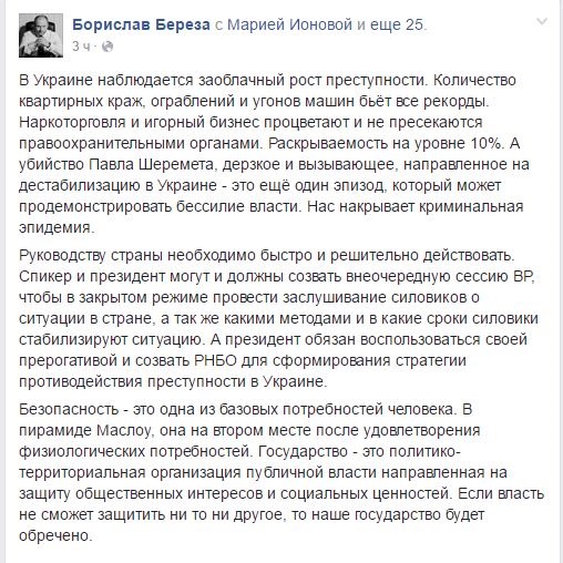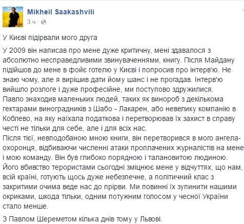 За його словами, вбивство Шеремета може бути частиною великого плану з дестабілізації ситуації в Україні.